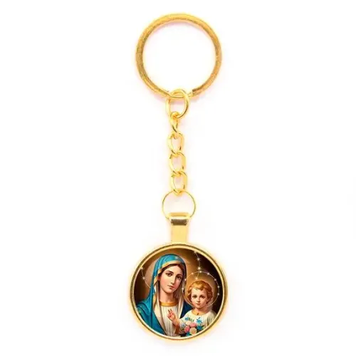Круглый брелок, цвет золото, с цепочкой, Богородица с Иисусом C1124020