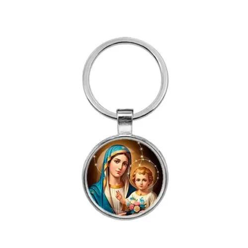 Круглый брелок, цвет серебро, Богородица с Иисусом C1124021