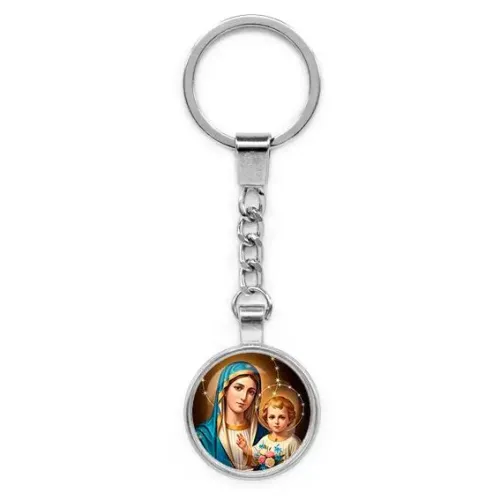 Круглый брелок, цвет серебро, с цепочкой, Богородица с Иисусом C1124022