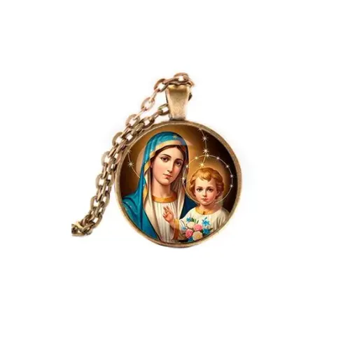 Кулон, цвет бронза, с цепочкой, Богородица с Иисусом C1124028