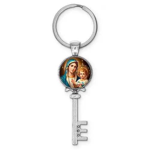 Брелок ключ в цвете серебра — это не только практичный аксессуар, но и символ веры. Изображение Богородицы с Иисусом на брелоке придаёт особый смысл и может стать настоящим оберегом.