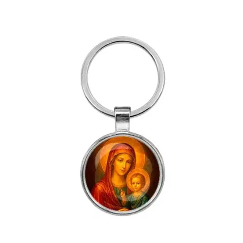 Круглый брелок, цвет серебро, Матерь божья с Иисусом C1125021