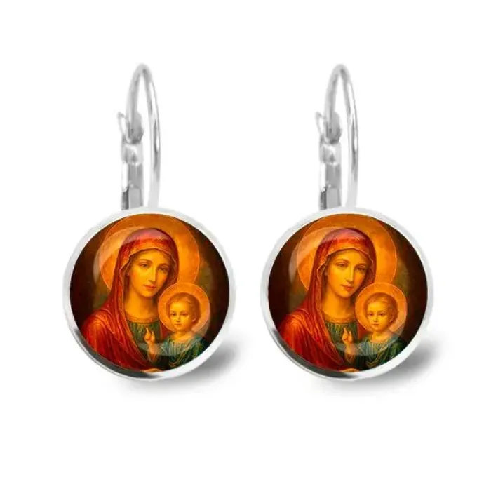 Серьги металлические, Матерь божья с Иисусом C1125038