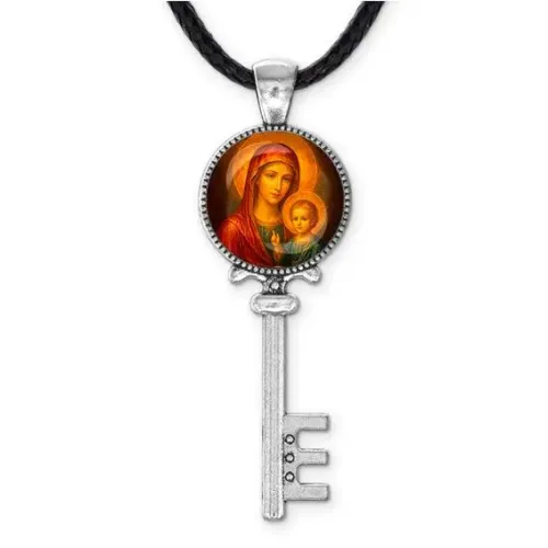 Кулон ключ, цвет серебро, со шнурком, Матерь божья с Иисусом C1125043