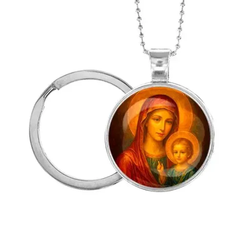 Кулон-брелок «Матерь Божья с Иисусом» — это изысканный аксессуар, который сочетает в себе духовный символизм и практичность. Этот стильный предмет выполнен из бижутерного сплава с покрытием под серебро и дополнен стеклянной линзой, защищающей изображение.