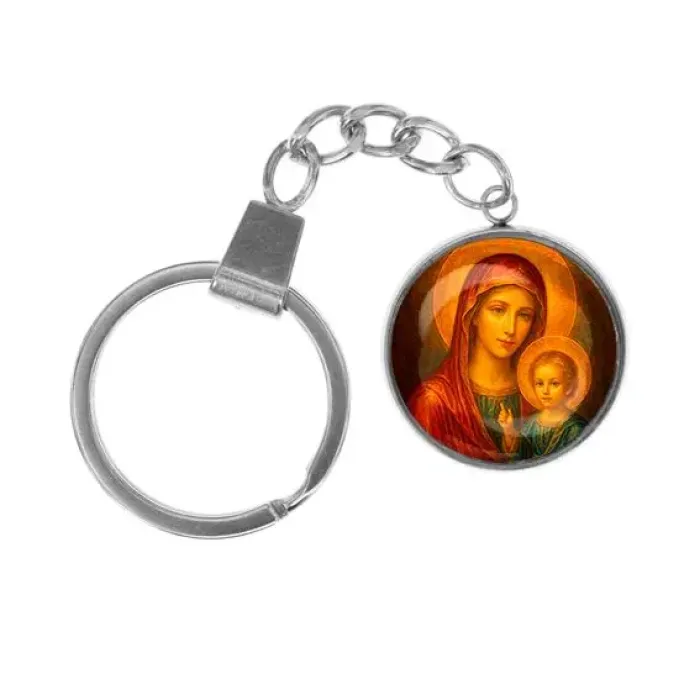 Брелок из нержавеющей стали — это стильный и символичный аксессуар, который сочетает в себе прочность и элегантность. Изображение Матери Божьей с Иисусом под выпуклой стеклянной линзой добавляет особый смысл этому изделию.