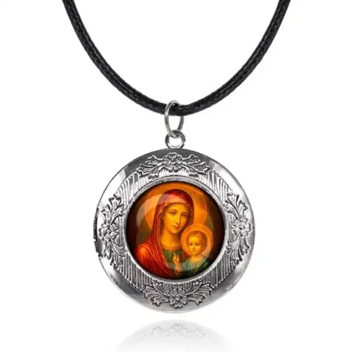 Арома-кулон металлический с изображением Матери Божьей и Иисуса создаёт атмосферу духовного покоя и умиротворения. Изготовленный из бижутерного сплава под серебро, он станет стильным аксессуаром для повседневной жизни. Размер кулона составляет 36х33 мм, а изображение защищено выпуклой стеклянной линзой диаметром 20 мм. В комплект входит шнурок с застёжкой и впитывающий шарик для ароматических масел, что позволяет наслаждаться любимыми запахами в течение дня. Такой кулон может стать отличным подарком или элементом декора для создания уюта.