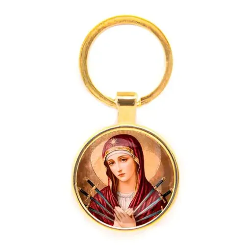 Круглый брелок, цвет золото, Матерь Божья Семистрельная C1126019