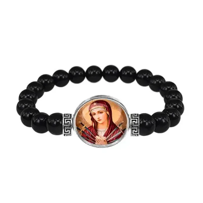 Браслет из черного агата, Матерь Божья семистрельная C1126056