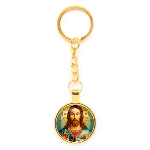 Круглый брелок с изображением Иисуса Христа — символ веры и надежды. Этот стильный аксессуар станет прекрасным подарком для близких или элементом личного стиля. Изготовлен из бижутерного сплава с покрытием под золото и стекла, что придаёт ему особую привлекательность.