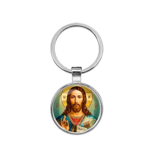 Круглый брелок, цвет серебро, Иисус Христос C1130021