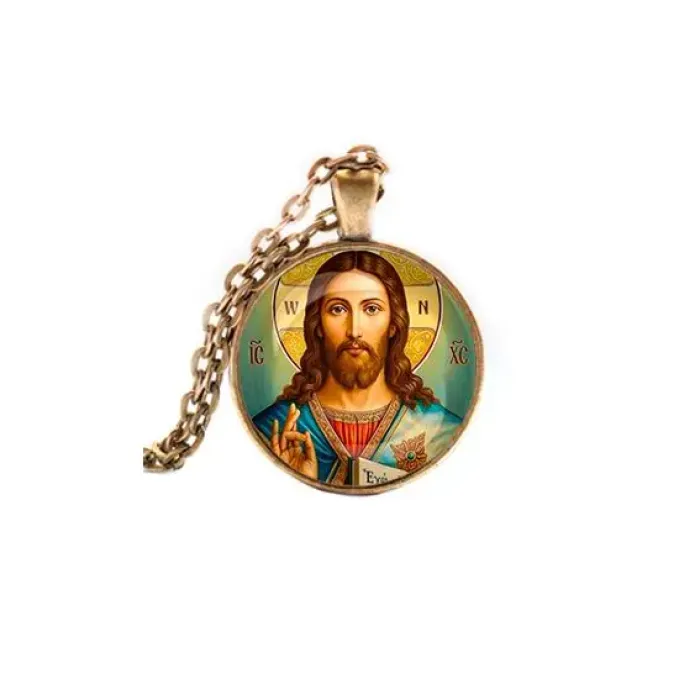 Кулон с изображением Иисуса Христа — это не только стильный аксессуар, но и символ веры. Изготовленный из бижутерного сплава с покрытием под бронзу и стекла, он станет прекрасным дополнением к любому образу. Основные особенности: