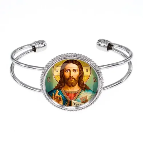 Металлический браслет с изображением Иисуса Христа станет не только стильным аксессуаром, но и символом веры. Изготовленный из бижутерного сплава с покрытием под серебро, он отличается прочностью и долговечностью. Диаметр изображения составляет 25 мм и защищен выпуклой стеклянной линзой, что придает ему особую выразительность. Браслет безразмерный, что делает его универсальным для любого запястья. Этот аксессуар традиционно ценится как элемент духовности и стиля.