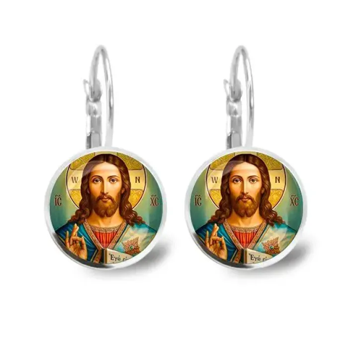 Эти стильные серьги с изображением Иисуса Христа станут не только ярким аксессуаром, но и символом веры. Диаметр каждой серьги составляет 18 мм, а под выпуклыми стеклянными линзами скрывается уникальный дизайн. Замок типа левербэк обеспечивает надежное крепление и удобство в носке. Изготовлены из бижутерного сплава с покрытием под серебро и стекла, что придаёт им элегантный вид. Такие серьги могут стать прекрасным подарком для близких или дополнением к личной коллекции украшений.