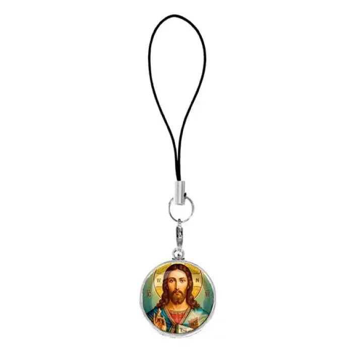 Подвеска для телефона, цвет серебро, со шнурком, Иисус Христос C1130060