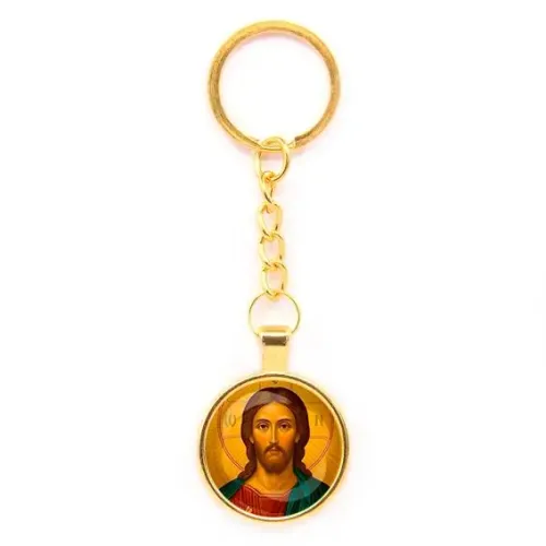 Круглый брелок, цвет золото, с цепочкой, Иисус Христос C1131020