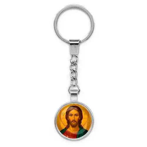 Круглый брелок, цвет серебро, с цепочкой, Иисус Христос C1131022