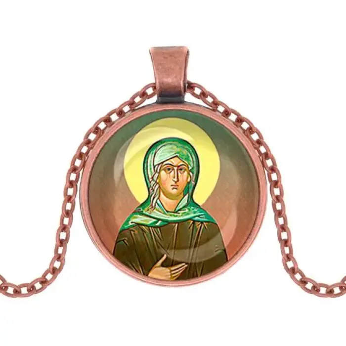 Кулон с изображением святой Ксении Петербургской — это не только стильное украшение, но и символ веры и надежды. Изготовленный из бижутерного сплава с покрытием под медь и стекла, он станет прекрасным дополнением к любому образу.