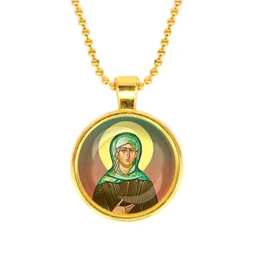 - Изображение защищено выпуклой стеклянной линзой для долговечности. Кулон имеет глубокий культурный контекст, связанный с образом святой Ксении Петербургской, что придаёт ему особую значимость.