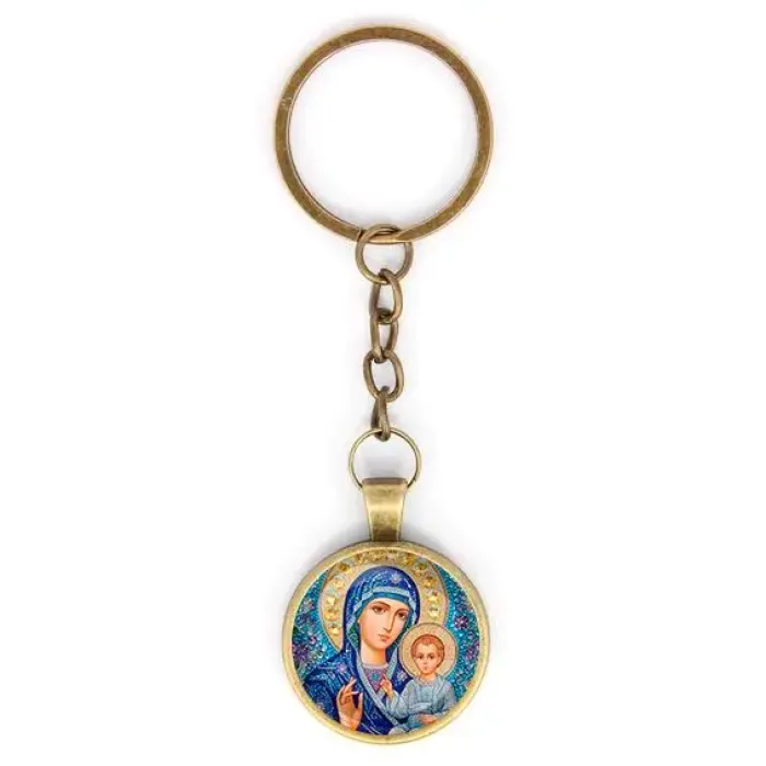 Круглый брелок, цвет бронза, с цепочкой, Матерь Божия C1133018