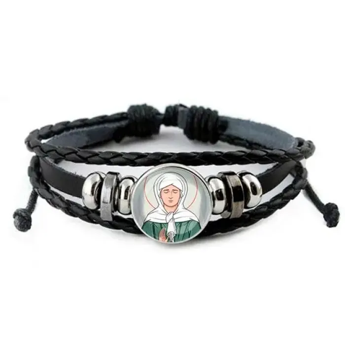 Кожаный браслет «Матрена Московская» — это стильный аксессуар с культурным значением. Изготовленный из экокожи, он украшен изображением диаметром 20 мм под выпуклой стеклянной линзой. Браслет имеет безразмерную форму и регулируется по руке, что обеспечивает комфортную посадку. Материалы: бижутерный сплав с покрытием под серебро и стекло делают изделие не только привлекательным, но и долговечным. Этот браслет можно носить как в повседневной жизни, так и на праздниках, добавляя особое очарование любому образу.