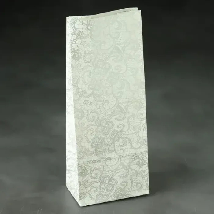 Пакеты изготовлены из трёхслойного материала, что обеспечивает прочность и герметичность. Элегантный дизайн с серебристыми кружевами делает их привлекательными для использования.