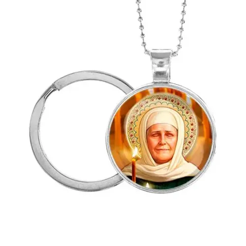 Кулон-брелок «Матрена Московская» — это стильный аксессуар, который сочетает в себе элегантность и функциональность. Он выполнен из бижутерного сплава с покрытием под серебро и дополнен стеклянной вставкой. Этот уникальный предмет может использоваться как кулон на цепочке или как брелок на кольце.