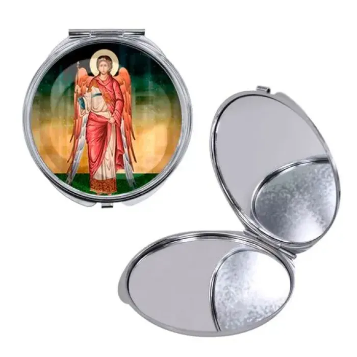 Круглое складное зеркало с изображением Архангела Михаила — это не только практичный аксессуар, но и символ защиты и силы. Идеально подходит для использования в повседневной жизни или как оригинальный подарок.