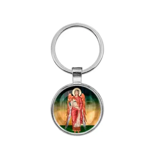 Круглый брелок с изображением Архангела Михаила — это стильный аксессуар, который не только украшает ключи, но и символизирует защиту и покровительство. Изготовленный из бижутерного сплава с покрытием под серебро и стекла, этот брелок станет отличным подарком для близких или личным оберегом. Размер изделия с кольцом составляет 28х60 мм, а изображение надежно защищено выпуклой стеклянной линзой. Такой брелок в народе ценится за свою красоту и глубокий смысл.