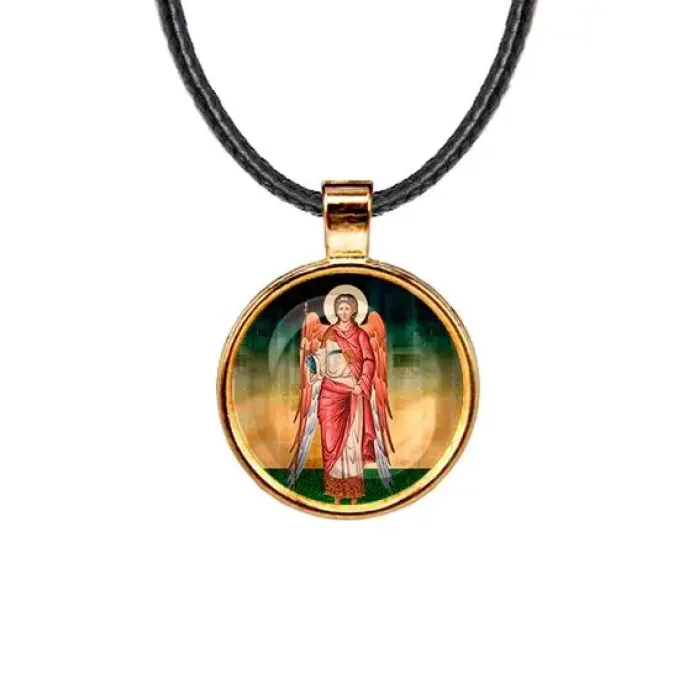 Кулон с изображением Архангела Михаила — это не просто украшение, а символ защиты и силы. Изготовленный из бижутерного сплава с покрытием под золото и стекла, он станет прекрасным дополнением к любому образу.