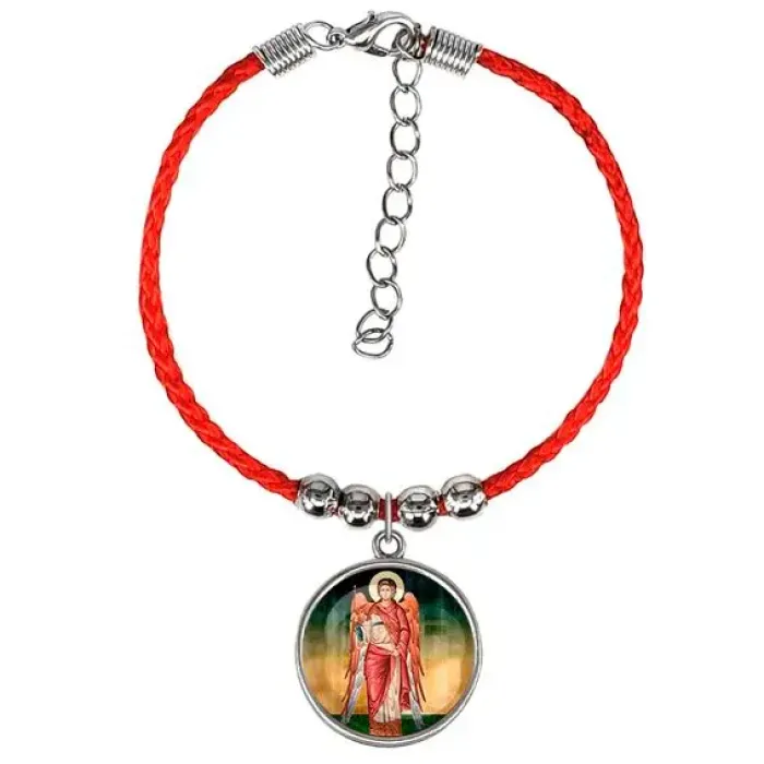 Браслет из красного шнура с изображением Архангела Михаила — это не только стильный аксессуар, но и символ защиты и силы. Изготовленный из яркого и прочного шнурка, он украшен выпуклым стеклом на металлической основе. Максимальный диаметр браслета составляет 7,5 см и регулируется под размер запястья. Материалы: шнур, бижутерный сплав с покрытием под серебро и стекло. Диаметр изображения — 20 мм. Этот браслет станет прекрасным подарком для тех, кто ценит духовные символы и хочет подчеркнуть свою индивидуальность.