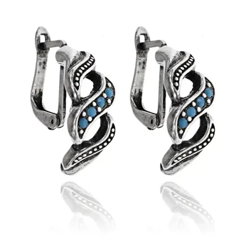 Серьги из бижутерного сплава в форме волн с инкрустацией стразами.