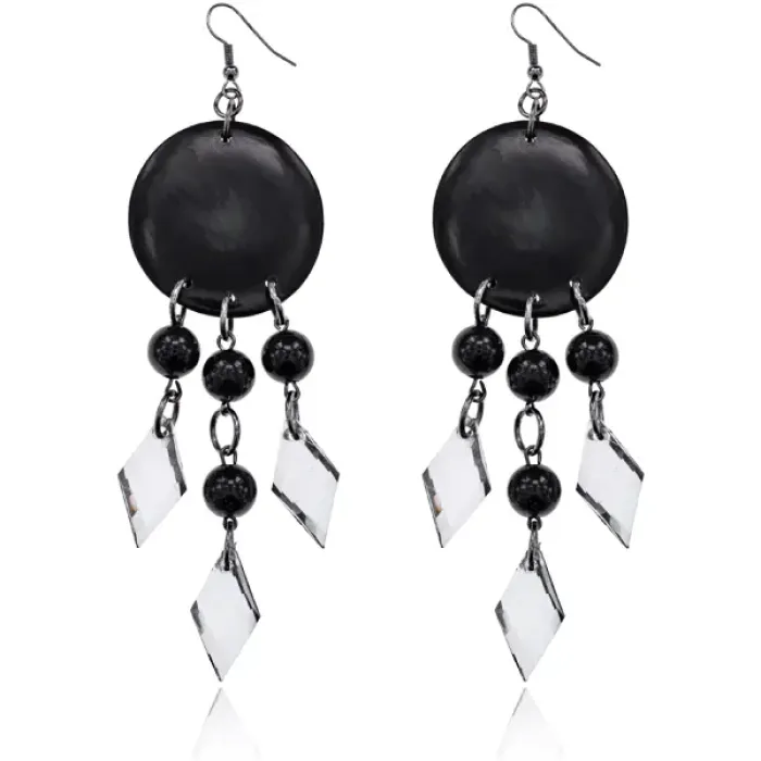 Серьги Круг с бусинами, цвет черный UD225