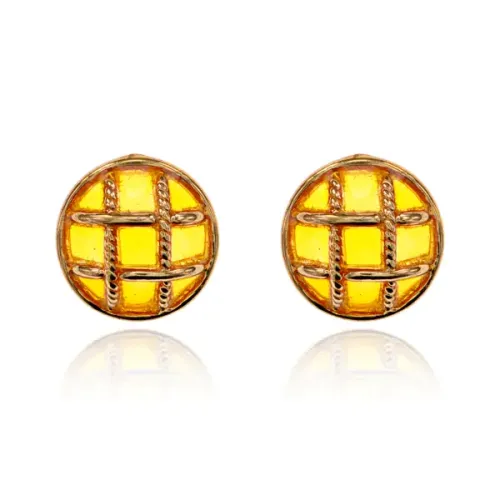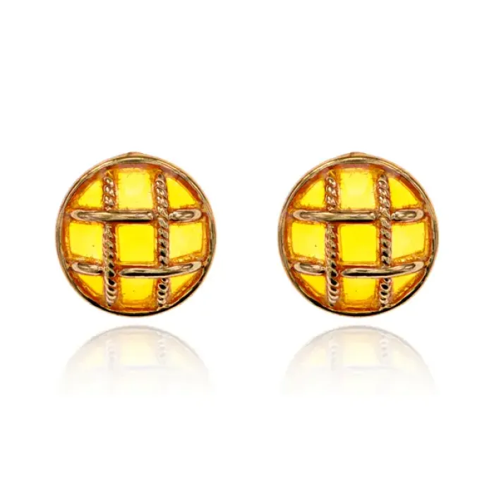 Серьги-гвоздики из бижутерного сплава круглой формы с сетчатым дизайном, желтого цвета.
