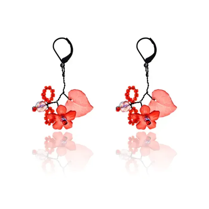 Серьги Лист и цветок с бисером, цвет красный UD232-r