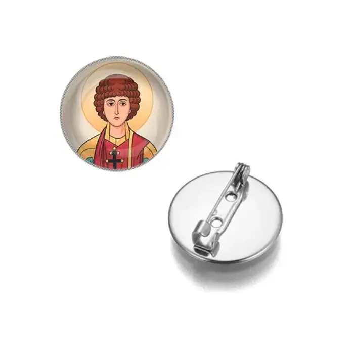 Круглый значок с изображением святого Пантелеймона Целителя — символ надежды и исцеления. Изготовленный из бижутерного сплава с покрытием под серебро и стекла, этот аксессуар станет прекрасным дополнением к любому наряду. Диаметр значка составляет 26 мм, а изображение защищено выпуклой стеклянной линзой, что обеспечивает его долговечность и яркость. Традиционно такие значки используются как обереги или подарки на важные события.