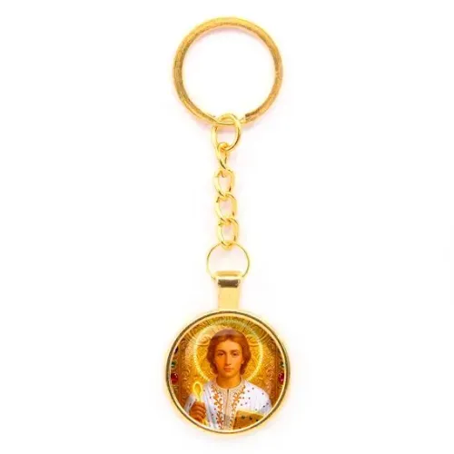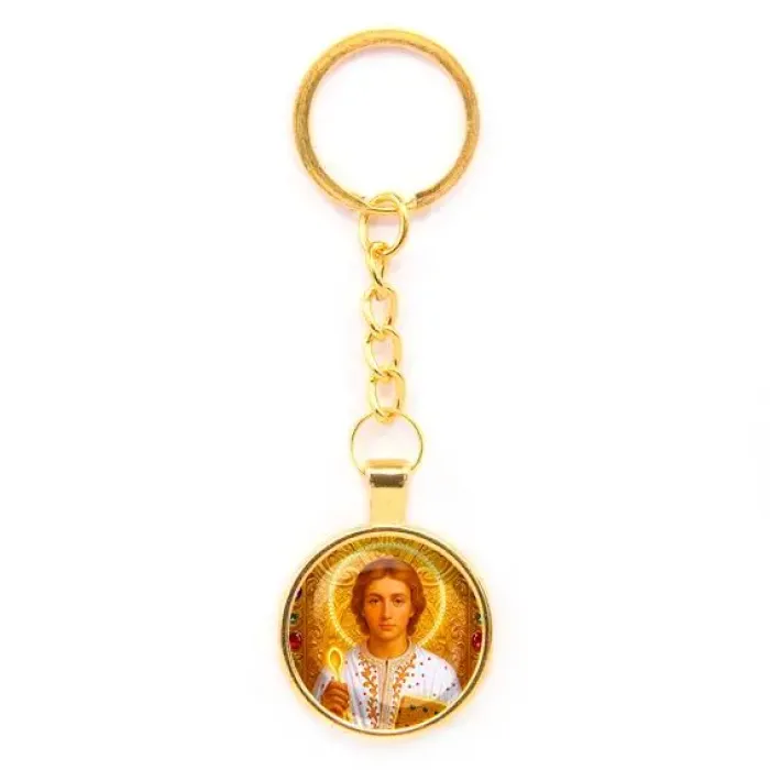 Круглый брелок с изображением святого Пантелеймона Целителя — это не только стильный аксессуар, но и символ защиты и помощи в трудные времена. Изготовленный из бижутерного сплава с покрытием под золото и стекла, он станет прекрасным подарком для близкого человека или личным оберегом. Основные особенности: