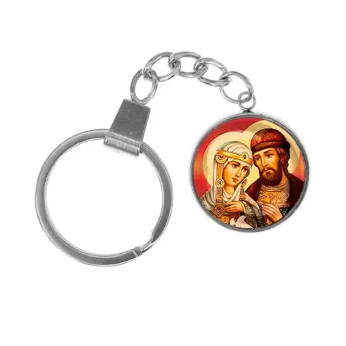 Брелок из нержавеющей стали — это стильный и практичный аксессуар, который сочетает в себе красоту и функциональность. Он выполнен в виде кулона-амулета с изображением Петра и Февронии — символа любви и верности. Основные особенности: