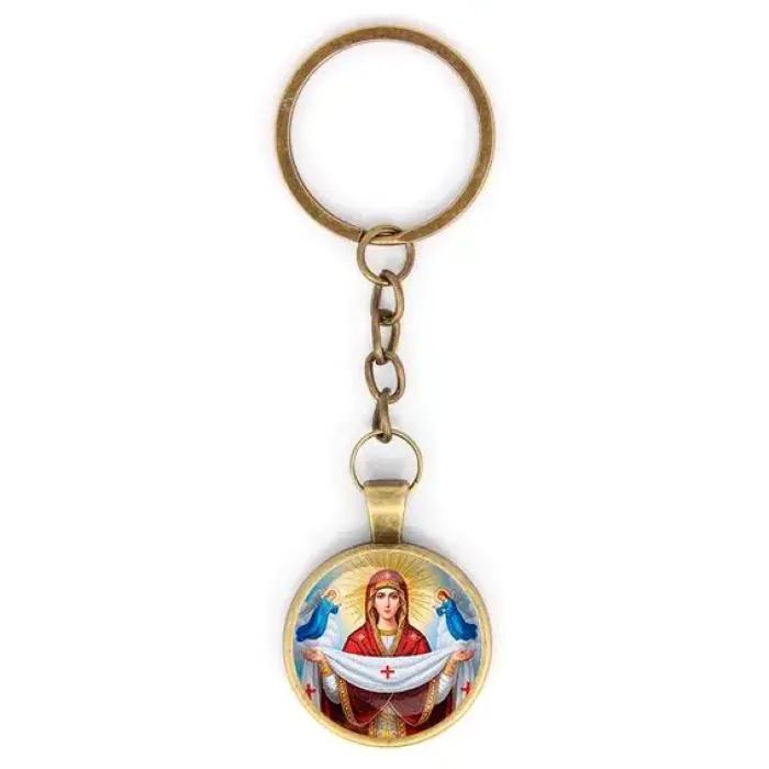 Круглый брелок, цвет бронза, с цепочкой, Покров Божией Матери C1146018