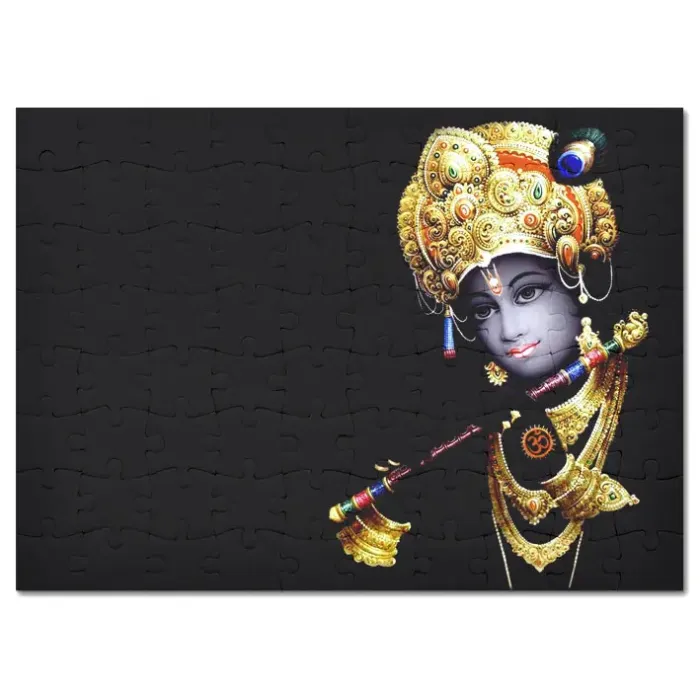 Пазл с изображением Кришны, изготовленный из мелованного картона с глянцевым покрытием.
