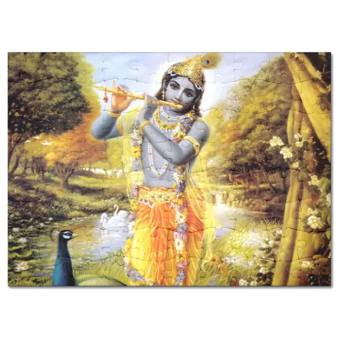 Пазл с изображением Кришны. Изготовлен из мелованного картона с глянцевым покрытием.
