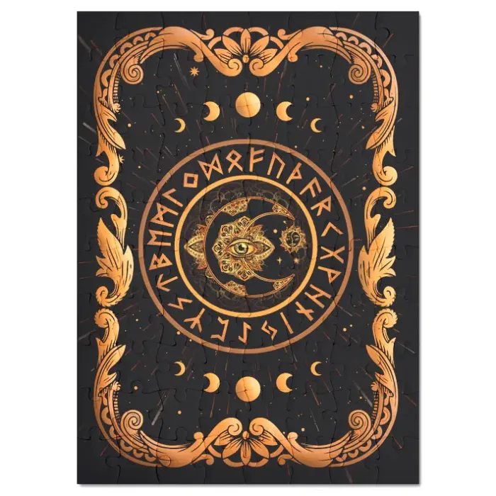 Пазл с изображением «Месяц и Солнце» для сборки, изготовленный из мелованного картона с глянцевой поверхностью.