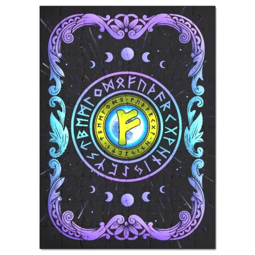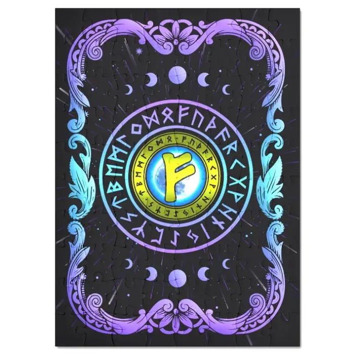 Пазл с изображением руны Феху. Изготовлен из мелованного картона с глянцевым покрытием.