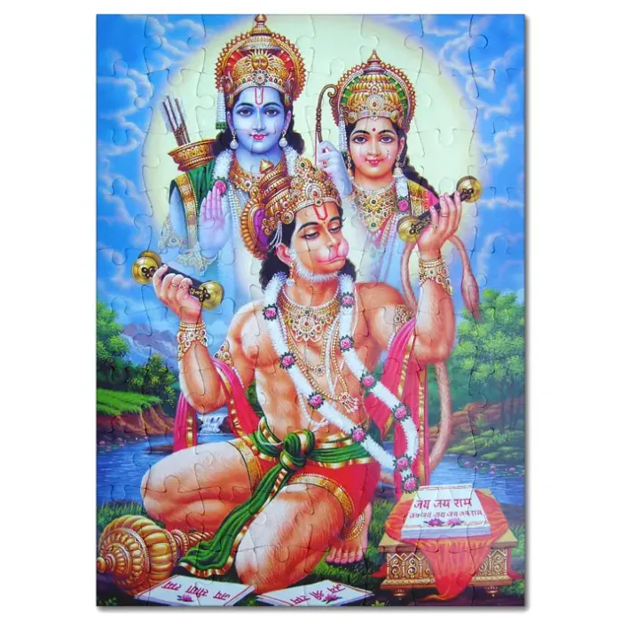 Пазл с изображением Рамы, Ситы и Ханумана. Изготовлен из мелованного картона с глянцевым покрытием.
