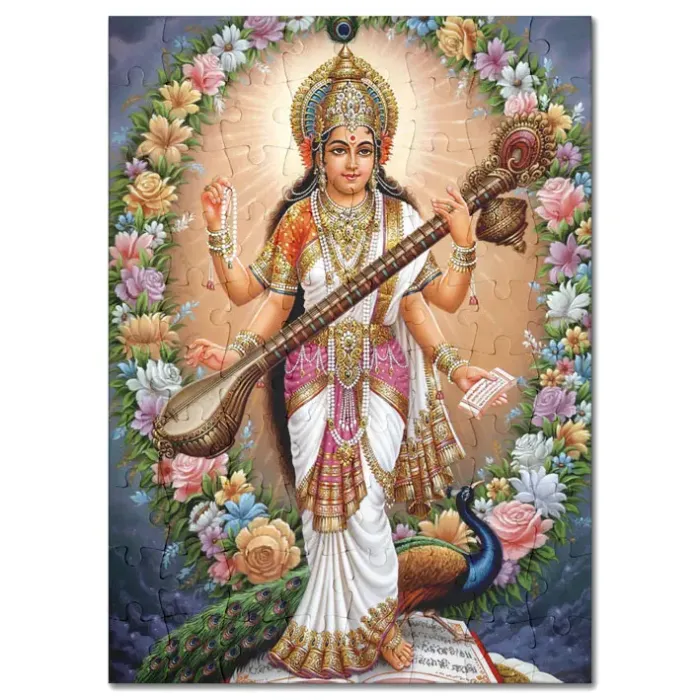 Пазл с изображением богини Сарасвати. Изготовлен из мелованного картона с глянцевой поверхностью.