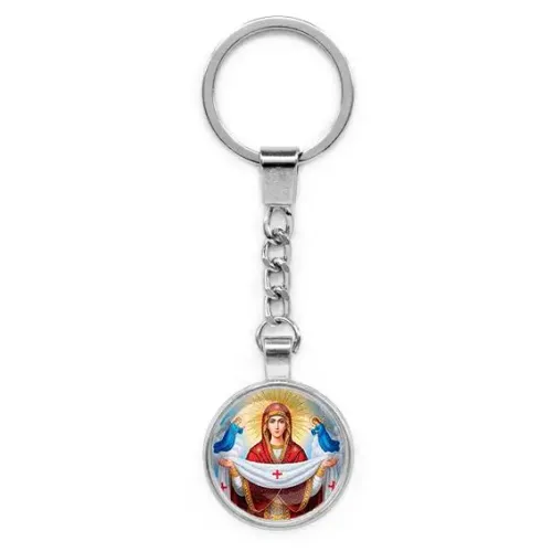 Круглый брелок, цвет серебро, с цепочкой, Покров Божией Матери C1146022
