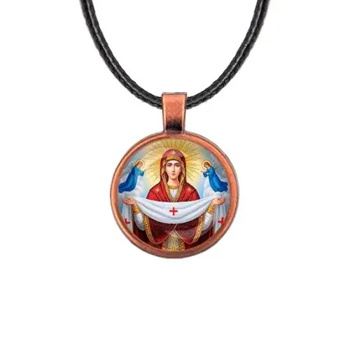 Кулон с изображением Покрова Божией Матери — это изысканный аксессуар, который сочетает в себе духовный смысл и стиль. Изготовленный из бижутерного сплава с покрытием под медь и стекла, он привносит нотку благородства в любой образ.