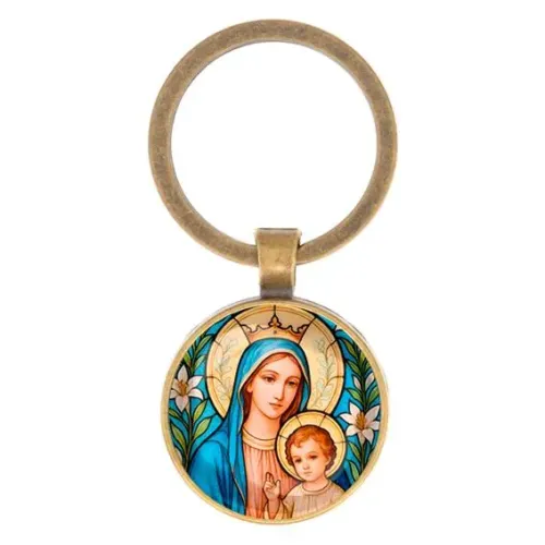 Круглый брелок с изображением Пресвятой Богородицы — это не только стильный аксессуар, но и символ веры и защиты. Изготовленный из бижутерного сплава с покрытием под бронзу и стекла, он сочетает в себе прочность и элегантность. Размер брелка с кольцом составляет 28х60 мм, а изображение защищено выпуклой стеклянной линзой, что придаёт ему дополнительную выразительность. Такой брелок станет замечательным подарком или личным оберегом для каждого верующего.