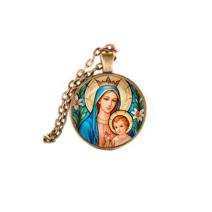 Кулон с изображением Пресвятой Богородицы — это не только стильный аксессуар, но и символ веры и защиты. Он выполнен из бижутерного сплава с покрытием под бронзу и дополнен стеклянной линзой, которая защищает изображение. Основные характеристики включают диаметр кулона 28 мм и длину цепочки 60 см с надежным замком типа лобстер. Этот кулон станет прекрасным подарком или элементом для личного ношения в моменты молитвы и размышлений.