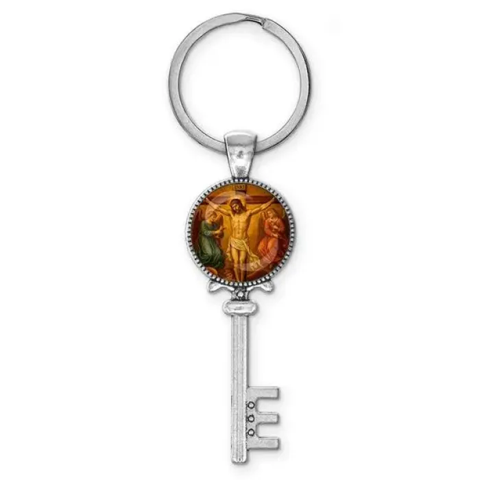 Брелок ключ, цвет серебро, с кольцом для ключей, Распятие C1148044